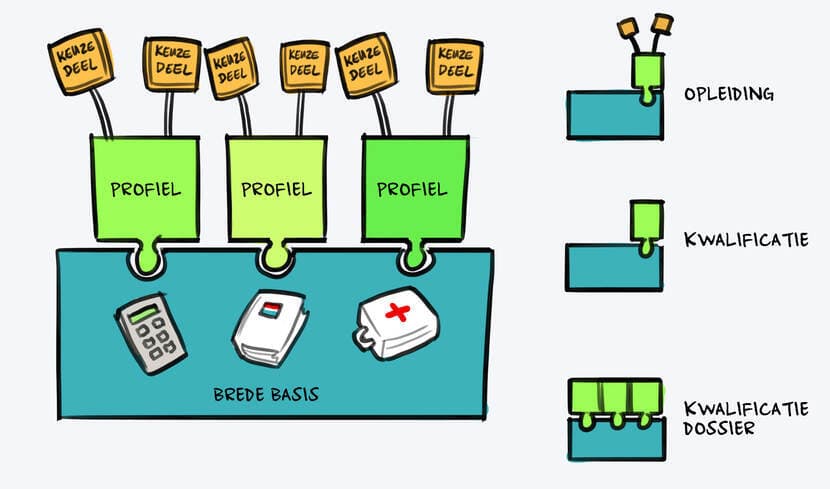 Om een diploma in het mbo te halen moet een student voldoen aan de eisen die staan in een kwalificatiedossier en – afhankelijk van het niveau van de opleiding – een aantal keuzedelen. Kwalificatiedossiers, bevatten vaak meerdere aanverwante opleidingen en bestaan uit een basisdeel en een profieldeel. Daarnaast kan de student kiezen uit een aantal keuzedelen, die hierop een verdieping of verbreding bieden.